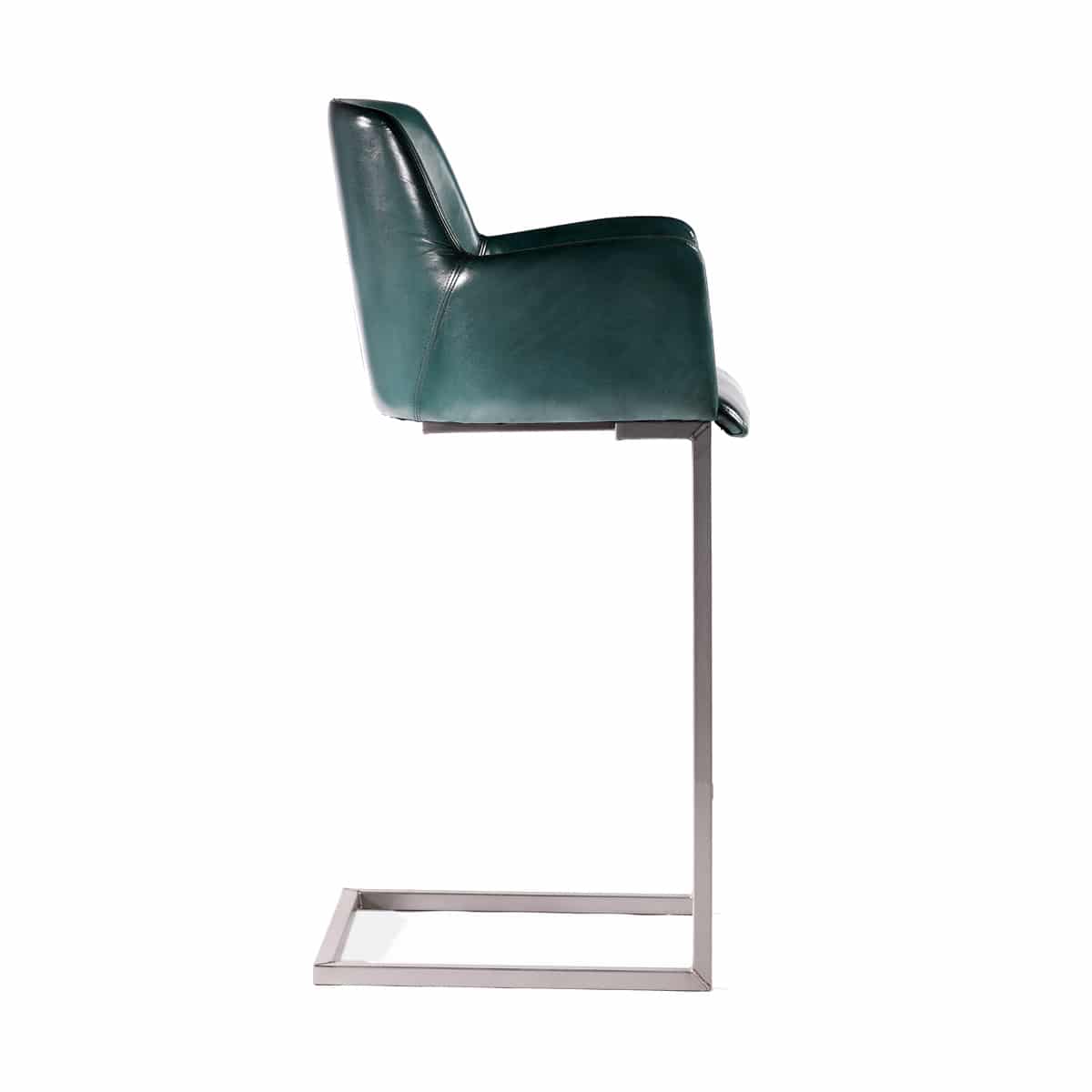 Cruz - Barhocker mit Leder und Rückenlehne aus italienischem Büffelleder in Blau, Grün, Türkis